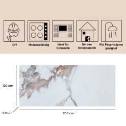Wandverkleidung – Wandpaneele in Marmoroptik aus PVC – Wandplatten in Hochglanz – 260 x 120 cm – Calacatta Gold – M18