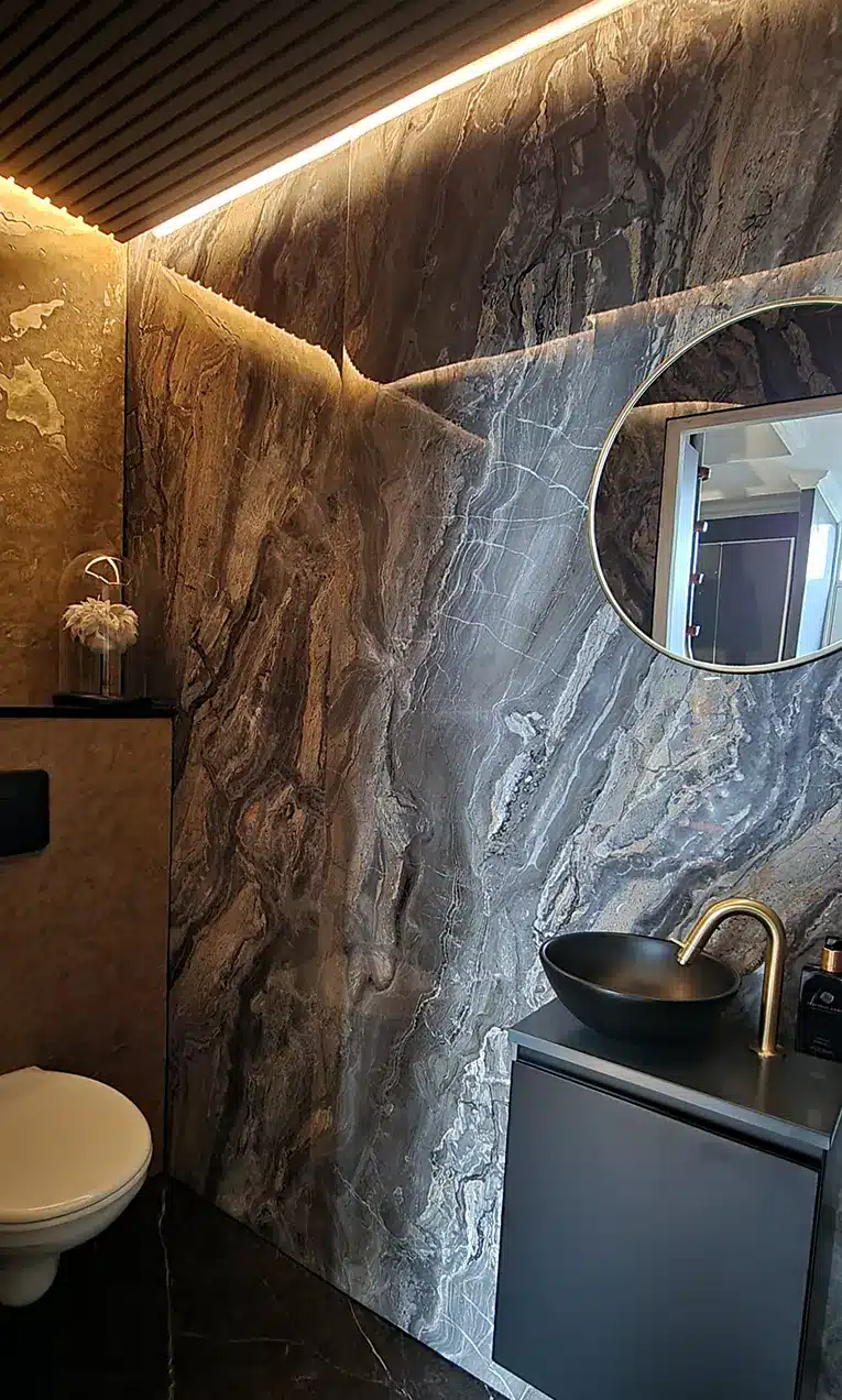 Wandverkleidung – Wandpaneele in Marmoroptik aus PVC – Wandplatten in Hochglanz – 260 x 120 cm – Onyx Arabesque – M21