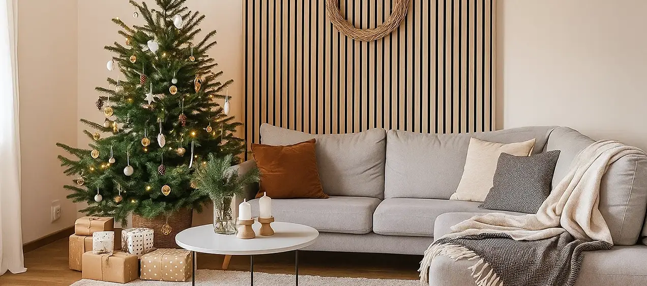 Mit einer Kombination aus Beleuchtung, natürlichen Materialien, hochwertigen Dekorationen und Wandpaneelen entsteht ein Zuhause, das festlich wirkt und gleichzeitig angenehm ruhig bleibt.